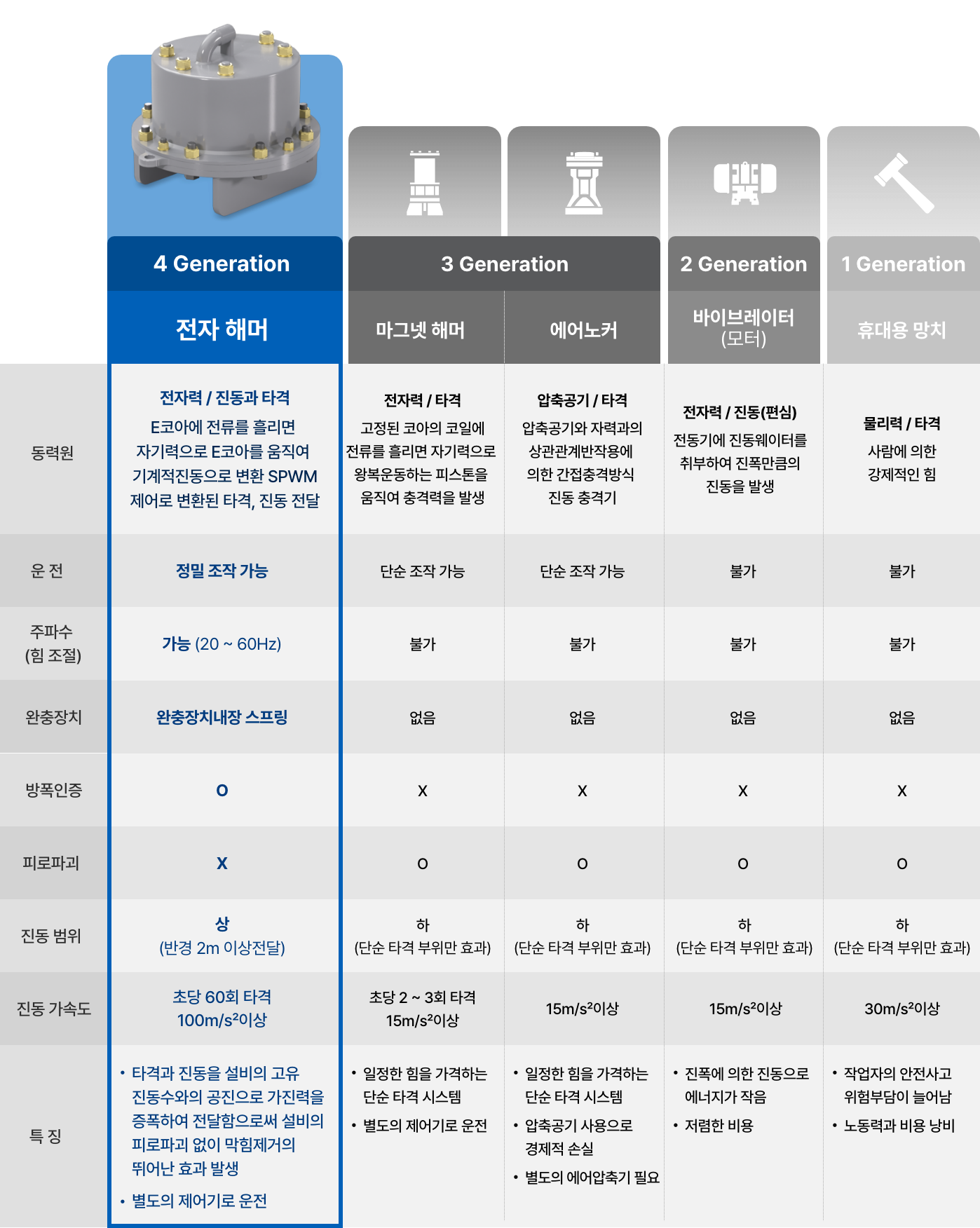순간적인 강력한 타격과 진동을 설비면에 전달 후,