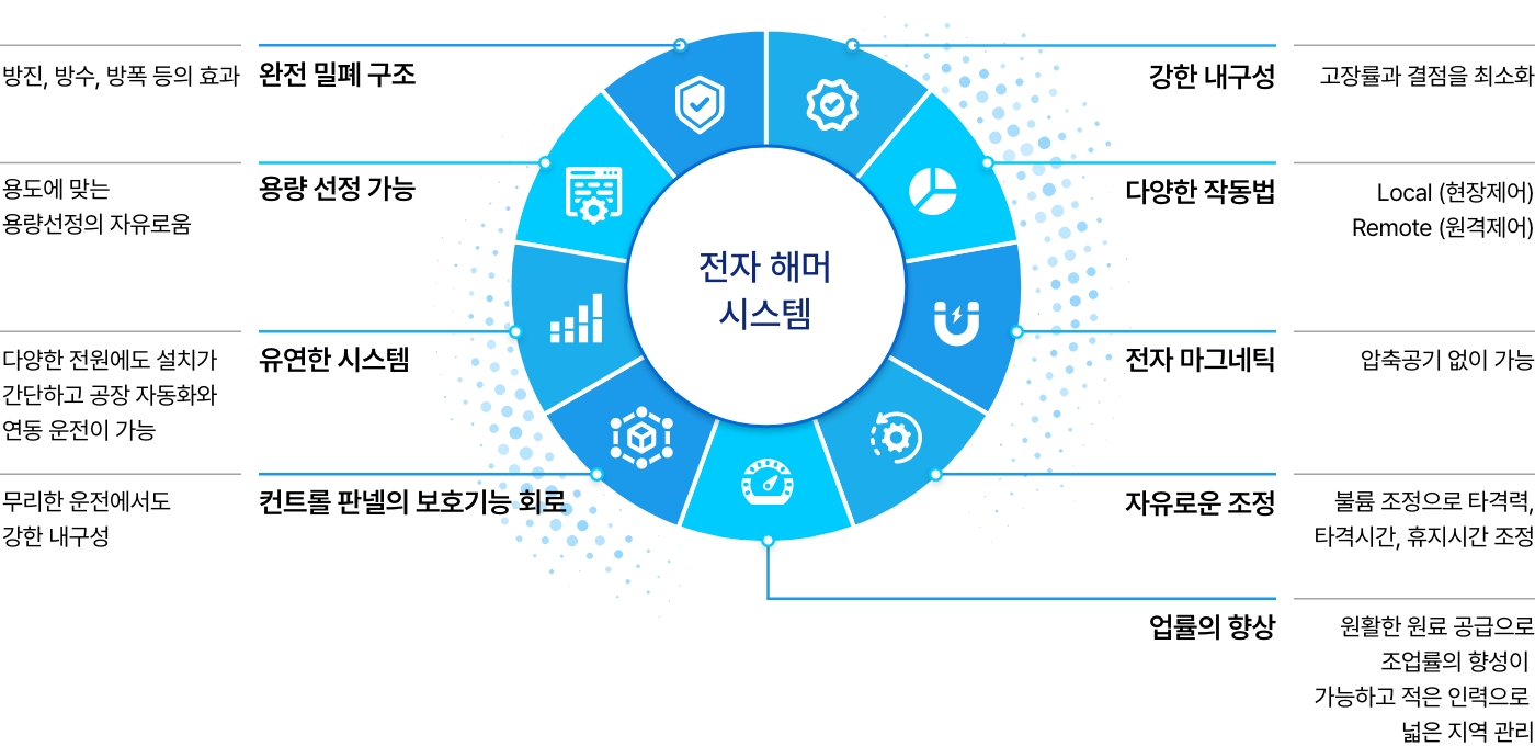 동작하기 위한 전기적 신호를 만들어 전달하며 여러 안전장치들을 가지고 전자해머를 운용합니다.